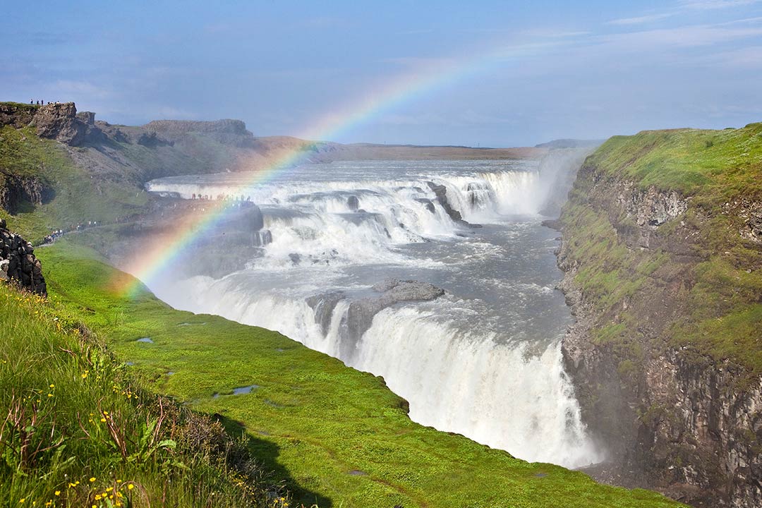 Gullfossin vesiputous on yksi Islannin kauneimmista vesiputouksista. Läheisen jäätikön sulamisvedet syöksyvät valtavalla voimalla alas rotkoon jatkaakseen sitten matkaa Atlantin valtamereen.