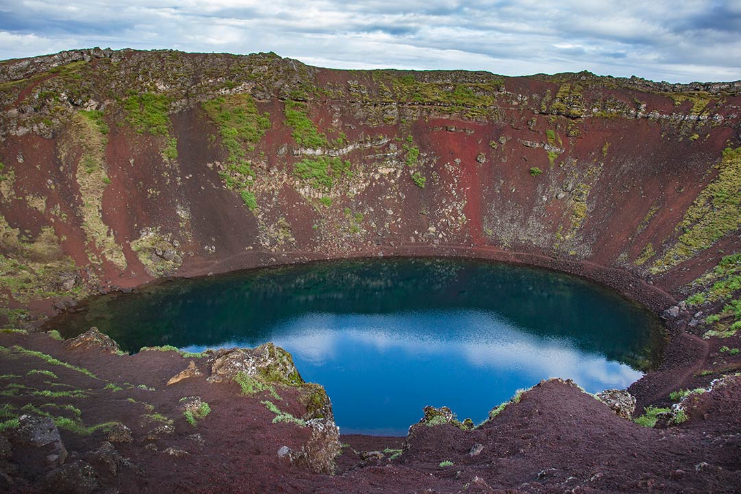 Punaruskeaseinäisen, yli viisikymmentä metriä syvän kraatterin pohjalla oleva vesi näyttää turkoosilta. Kraatterijärvi syntyi muutama tuhat vuotta sitten. Kraatterit syntyvät tulivuorenpurkauksen yhteydessä. Ne muodostuvat joko magman ja veden tai magman ja kaasun vuorovaikutuksesta, jolloin purkaus on räjähdysmäinen. Keriðin ympäri kulkee kävelypolku. Maanomistaja perii visiitistä pientä pääsymaksua.